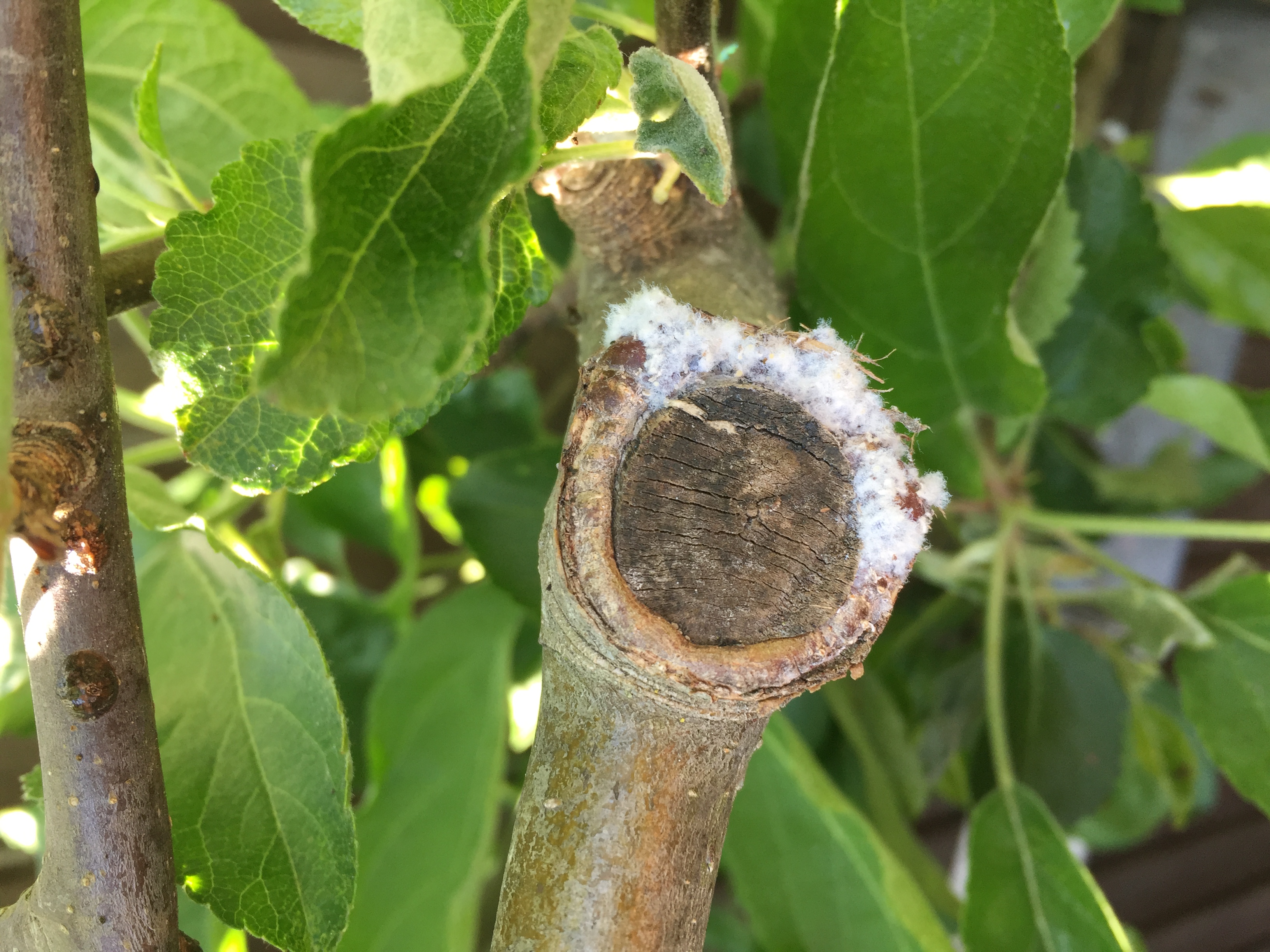 A white furry fungus in clumps on my apple tree and the leaves in places looking very shrivelled.