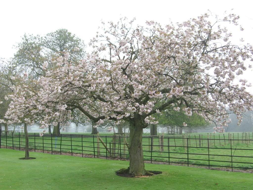 The photos of the cherry blossom make for a beautiful sight, as for the wood boring, it's got to be a wood boring beetle.