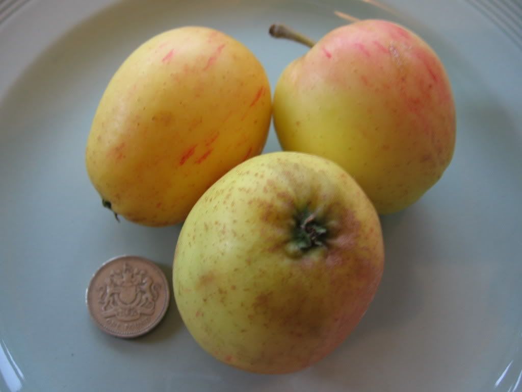 I have had a look around the www and the variety looks a possibility...but would welcome any further thoughts. The Brogdale site shows an apple with a deeper inset stalk and calyx end than the ones I photo'ed.??