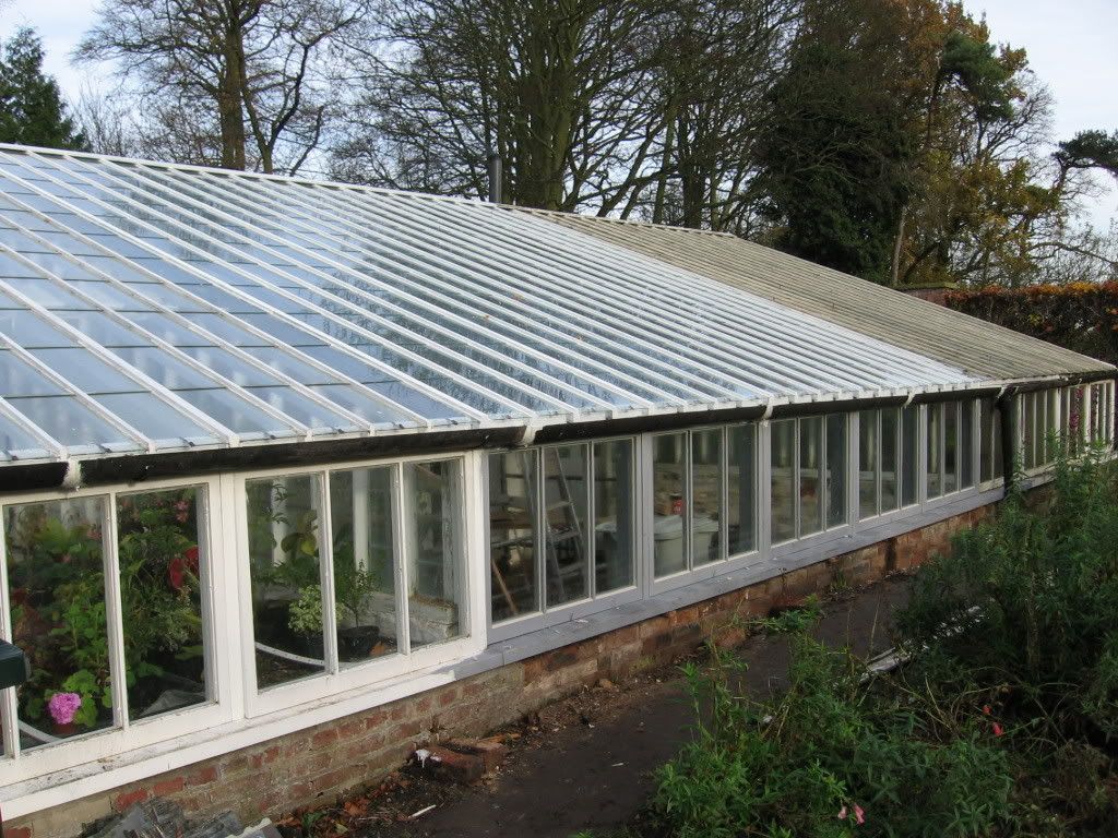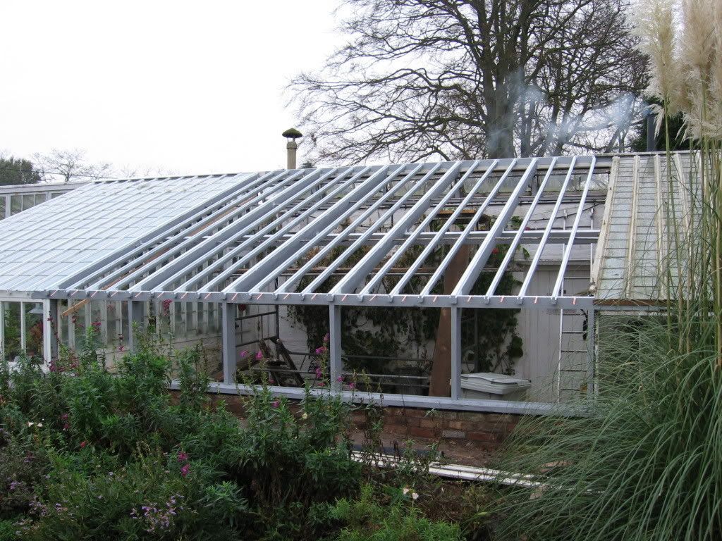 Mentioning greenhouses...the photos below show another job that is satisfying to see progressing...after much campaigning and more recently holding of fund raising events coupled with shared costs with "the owners"...Stage 2, the middle section, of the conservatory greenhouse is on the mend..