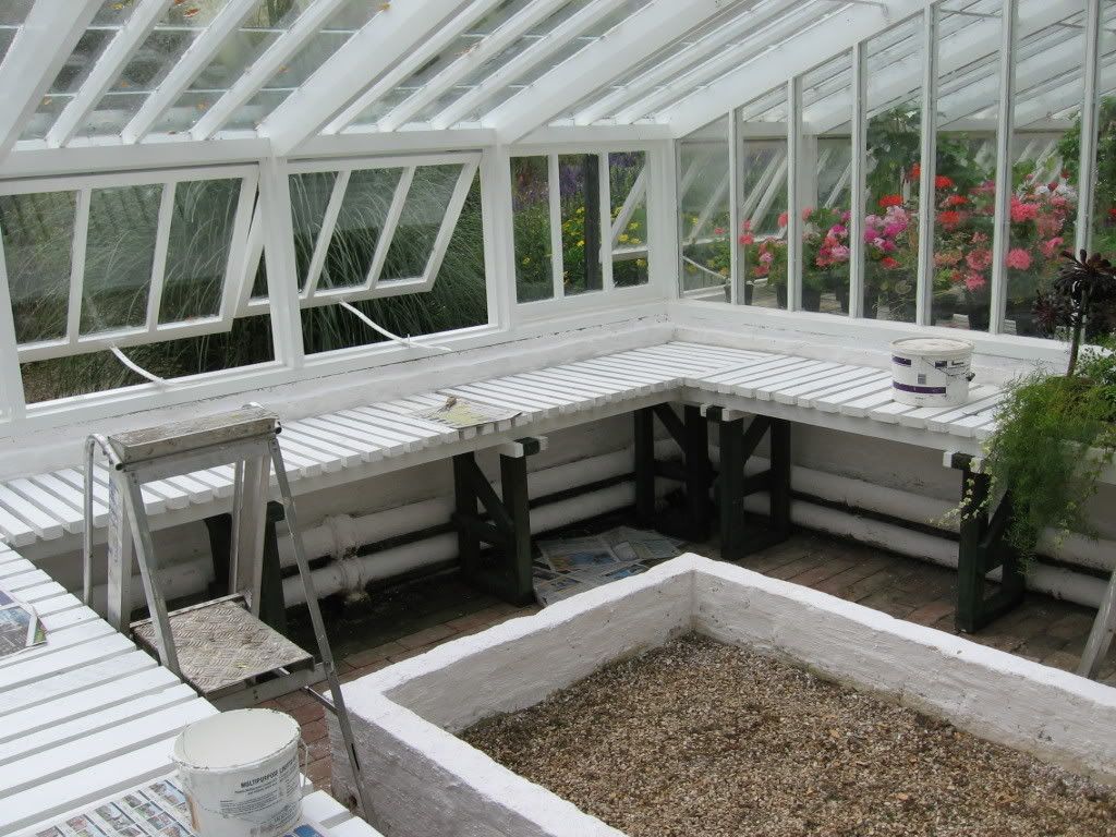 We have now got the 3rd section of the conservatory greenhouse back from rebuild and in between regular jobs we have been repairing staging and interior painting...